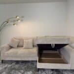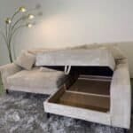 Cord fabric corner sofa with storage space