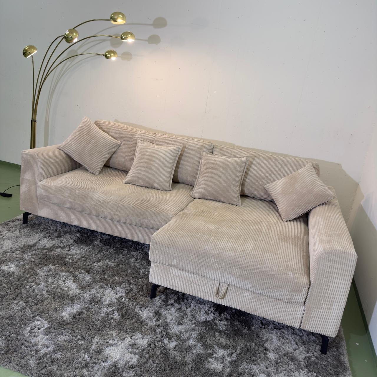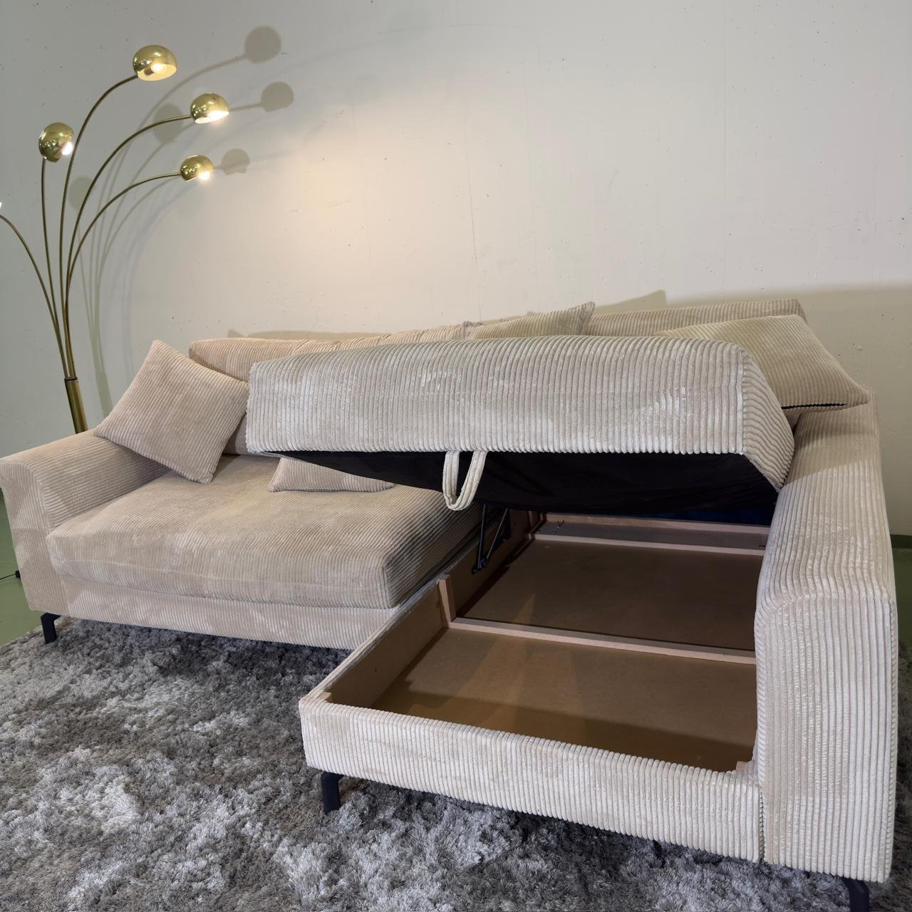 Elegantes Ecksofa aus Cordstoff mit Stauraum