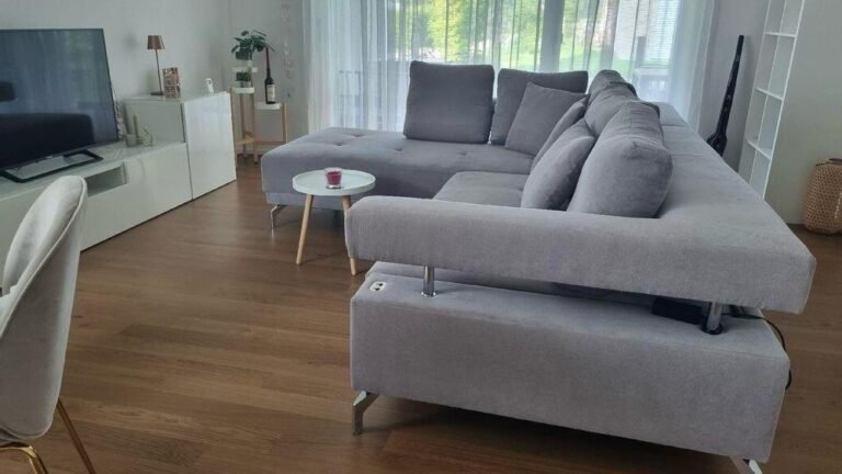 Werten Sie Ihren Wohnraum auf mit dem Ecksofa, entworfen für Komfort und Funktionalität. Dieses Graue Sofa aus Stöff Hero Anti-Dust-Material bietet einen eleganten und modernen Look. Ausgestattet mit einer elektrischen Bettfunktion bietet es sowohl Sitz- als auch Schlafkomfort.